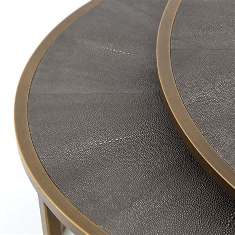 - Durability: Made from high-quality materials, the Shagreen Nesting Coffee Table is built to last. The shagreen top is resistant to scratches and stains, while the brass legs provide a sturdy and stable base.