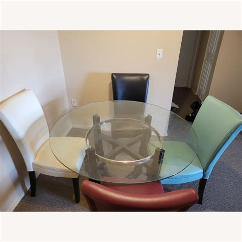 The round table features a stunning tempered glass tabletop that not only adds a touch of sophistication but also ensures durability, making it perfect for everyday use. The smooth and reflective surface of the glass enhances the visual appeal of the table, creating an illusion of spaciousness in your dining area. Additionally, the tempered glass is resistant to scratches and heat, providing a worry-free dining experience for years to come.